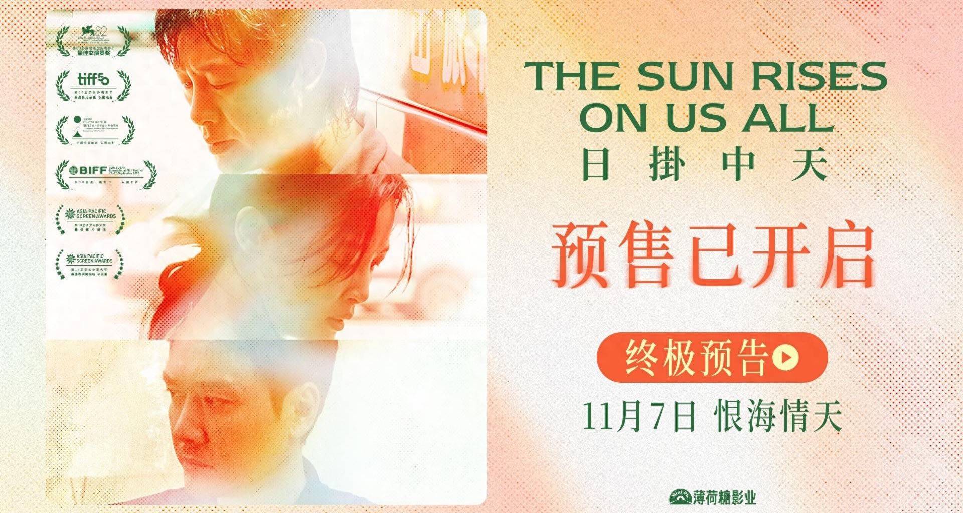 早前,影片在多个国内外电影节及影展率先亮相,并收获如潮好评,海量细节解读释出也持续提升观众们的购票热情。有影评人发布短评道: “观影中不止一次为这部片子的细腻所震撼,美云的一生太痛了,太阳照耀我们所有人都没能把美云一生的潮湿晒干…”。张颂文的表演也被媒体肯定为“震撼的叙事型表演,巧妙地掀起情绪涟漪,仿佛如秤砣一般沉在情感浇灌的湖水里,深沉有力”。种种精湛制作赋予的情绪共鸣体验,也令观众无限感慨“恨比爱长久,爱比恨浓烈”的宿命感伤。电影预售已开启,11月7日,走进影院,见证这段终将被真情抚平的爱恨纠葛。